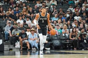 此役,文班亚马出战40分钟,投篮23中10,三分球5中1,罚球8中6,砍下27分18篮板6助攻1抢断5盖帽的数据。