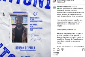 体育资讯10月31日讯经纪公司Antoniu’s Assessoria今日官方宣布,前大连英博外援罗伯森加盟,成为该公司旗下经纪人。